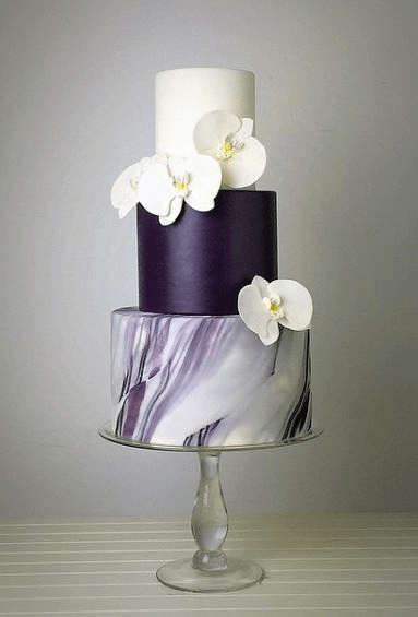 Design beautiful wedding cakes that combine deep purple with a marbled effect – another hot trend of 2018…