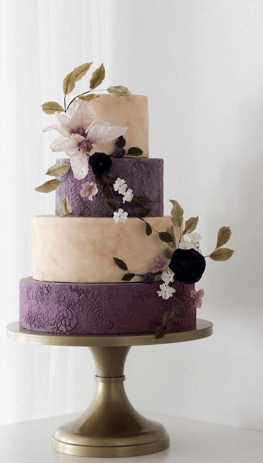 For more traditional wedding cakes add a textured mauve layer…