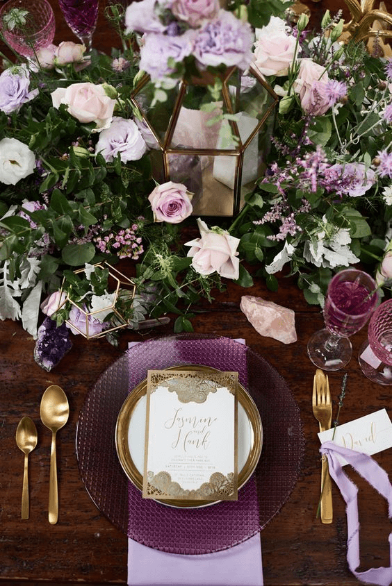 We think it’s the most beautiful colour for weddings – adding a calm sophistication and often regal touch to any tableware, flowers or decor, and there are a lot of ways to incorporate accents of this colour in a wedding theme or to go all out and let the purple reign.