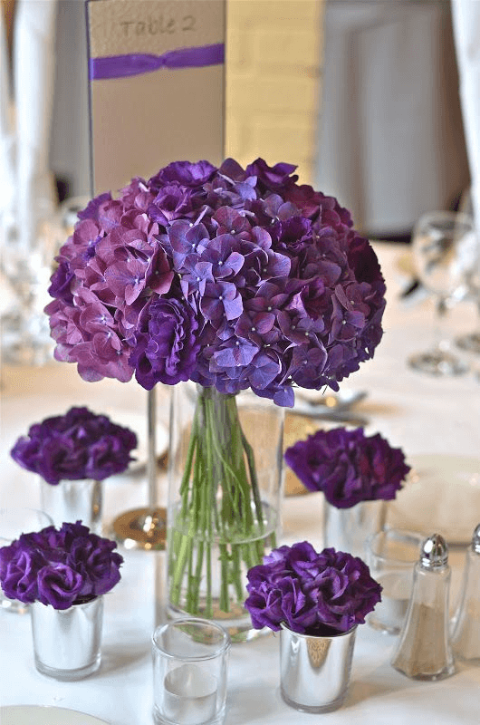 Keep it simple for couples who don’t want to spend a fortune on purple centrepieces…